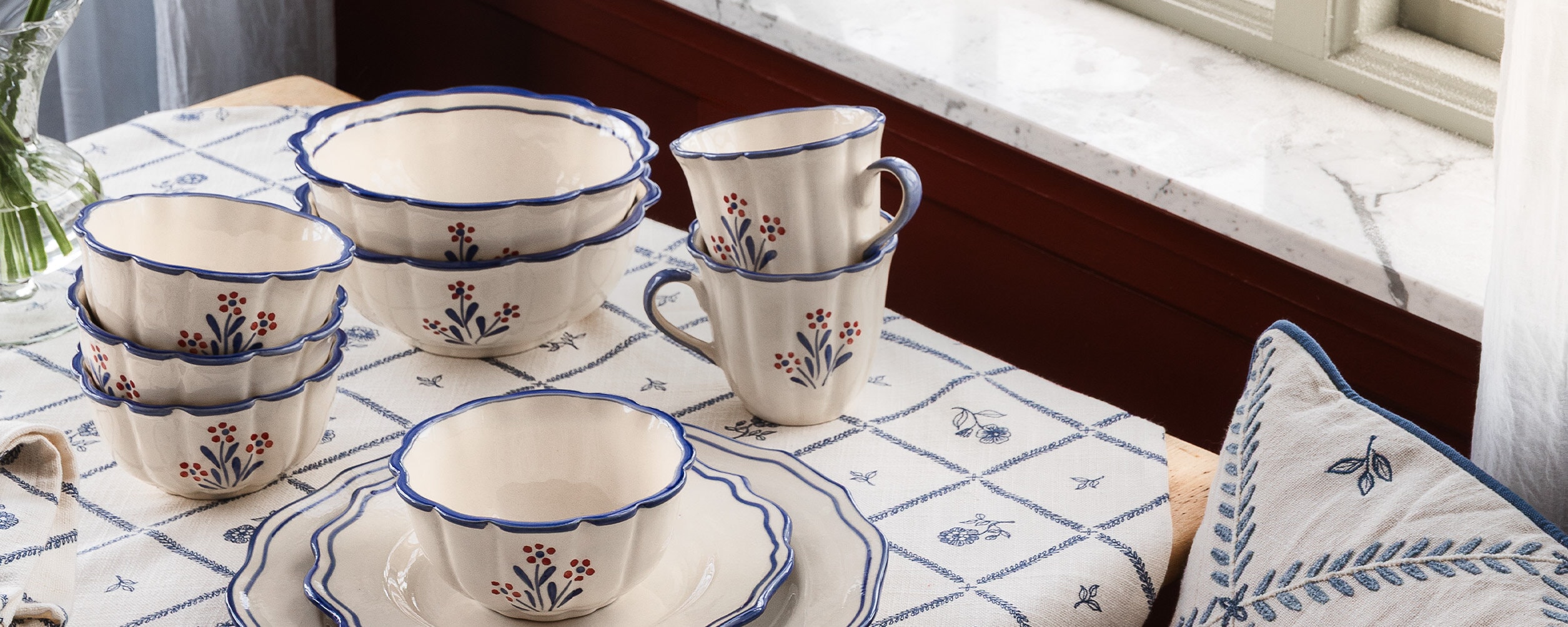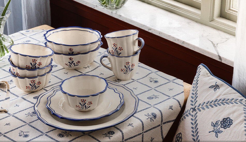 Duk i 100% bomull med ett uttrycksfullt mönster som ger dukningen liv och karaktär.