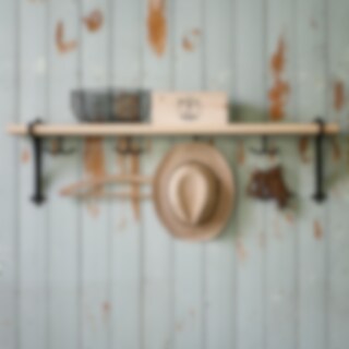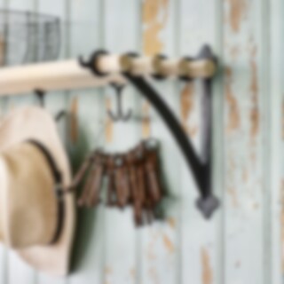 Ankarkrok för extra upphängning till hatthyllan Evert från Strömshaga. Kroken är tillverkad i svart gjutjärn och träs på rundstaven på hatthyllan.