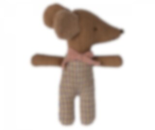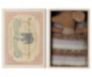 Denna mus är redo för timmars lek efter att ha sovit gott i den lilla tändsticksasken. Kläderna och sängkläderna är gjorda av mjuka tyger med unika tryck i vackra färger.