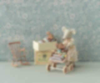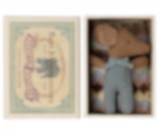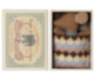 Denna mus är redo för timmars lek efter att ha sovit gott i den lilla tändsticksasken. Kläderna och sängkläderna är gjorda av mjuka tyger med unika tryck i vackra färger.