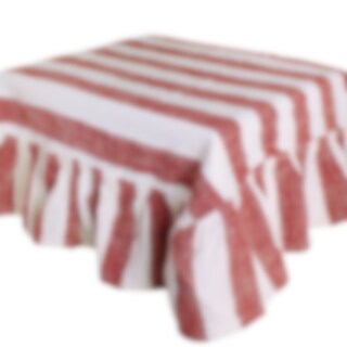 Duk i 100% ekologisk bomull med klassiskt rödrandigt mönster och en vacker volang. Fin att matcha med andra produkter i samma serie.
