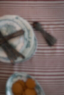 Dekorativ duk med röda och vita ränder. Passar fint på julbordet.