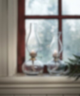 Rund fotogenlampa i klarglas med ränder, brännare i antikfärgad mässing och brännrör i klart glas. Inklusive en veke. Passar med veke artikelnummer 116210 och brännarerör med artikelnummer 128118G. Använd gärna Strömshagas luktfria lampolja (artikelnummer 100001) till denna oljelampa, säljs separat.