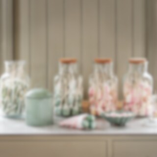 Glasburk med lock i kork. Praktiskt förvaring i köket men också fin till blombuketten.
