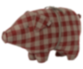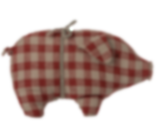 Gris i rödrutigt linnetyg med dekorativt band runt magen. Söt liten leksak som blir en fin julklapp till de minsta. Tål maskintvätt 30°C.