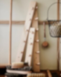 Kärt barn har många namn - kroklist, knopplist eller knoppbräda. Svensktillverkad hängare i trä med fyra runda knoppar. Tillverkat i ljust björkträ.
