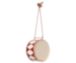 Trumma i metall med fint rutigt mönster och snöre för upphängning. Häng i julgranen eller som dekoration i barnrummet. Perfekt liten present till paketkalendern.