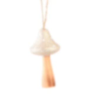 Vacker champagnefärgad julkula med formen av en svamp. Tillverkad i trä.