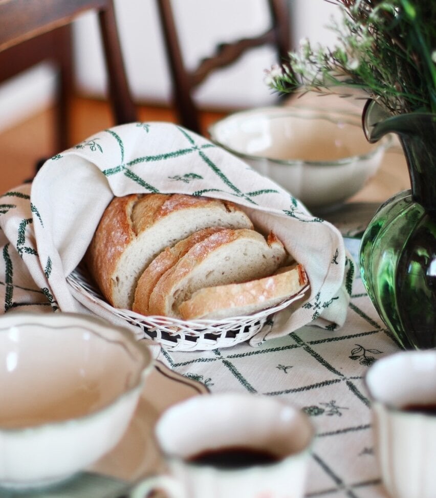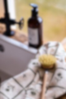 Kökshandduk i 100% ekologisk bomull med ett bedårande mönster av detaljerat ritade rutor av blad och små gröna blommor. Fint att kombinera tillsammans med de andra textila delarna i Lovisa-serien.