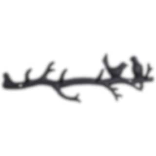 Fin kroklist i svart gjutjärn med fåglar och kvistar, där fyra av grenarna är krokarna. Fin detalj på väggen i hall eller sovrum.