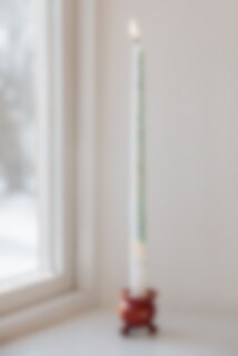 Svensktillverkad kulljusstake i björkträ. Handmålad i en vackert julröd färg med metallinsats för ett antikljus.