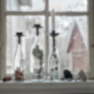 Beige ljushållare med dekorativ kant att sätta i en tom flaska. Ljushållaren är handgjord i Indien och dess vågformade kanter är handklippta. Små variationer i färg och form kan förekomma.