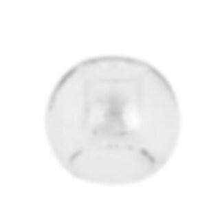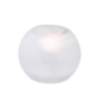 Enkel och lättplacerad ljuslykta i frostat glas likt en isglob med plats för värmeljus.