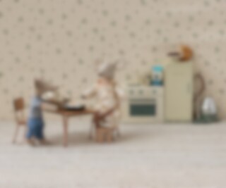 Storlek: Bord: L 13,5 x H 6,5 cm. Stol: H 9 cm
