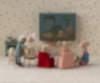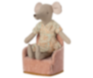 Ta en paus i denna härliga leksaksfåtölj. Perfekt i ett dockskåp med möss och kaniner från Maileg. Fyllning av polyester och med ett fluffigt och mysigt överdrag.