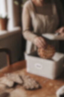Håll brödet färskt länge med denna brödlåda! Plåtburk med lock med texten Bröd. Från plåtburksserien Hugo Blå.