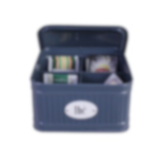 Plåtburk Hugo Thé är en stilren och praktisk plåtburk i vacker blå färg, utrustad med smarta fack för enkel organisering av olika sorters Thé. Perfekt för förvaring med charm och funktionalitet.
