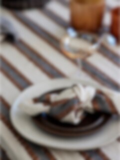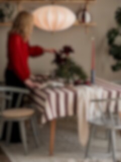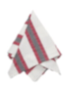 Dekorativ servett med rödrandig design och bäckebölja-effekt. Passar fint till julbordet.