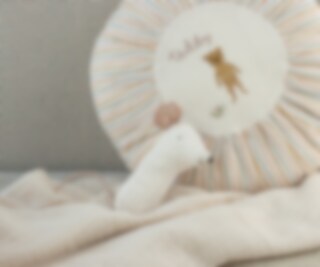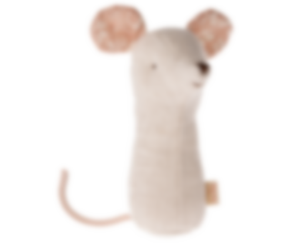 Söt skallra i form av en mus som passar i de små händerna. Gjord i linne och stoppad med återanvänd polyester och pe-pellets. För alla åldrar.