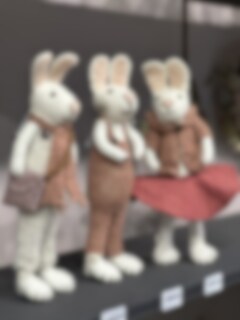 En stor tovad kanin med en rosa jacka och kjol, från Gry & Sif. Fin att ställa tillsammans med andra figurer från Gry & Sif.