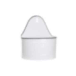 Mindre låda för vägg i vitlackerad plåt med grå kant. Använd för förvaring av diskborstar och rengöringsmedel i köket till exempel. Hål för upphängning.