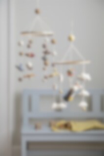 Denna tovade mobil från Gry & Sif är perfekt för barnet att titta på från sängen eller från skötbordet.