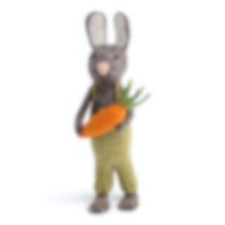 Stor Grå Kanin m. Gröna Byxor och Morot