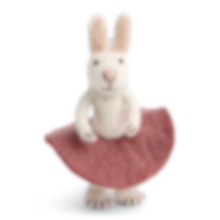 En liten tovad kanin med rosa kjol från Gry & Sif att hänga på en liten kvist, eller ställa tillsammans med andra figurer från Gry & Sif.