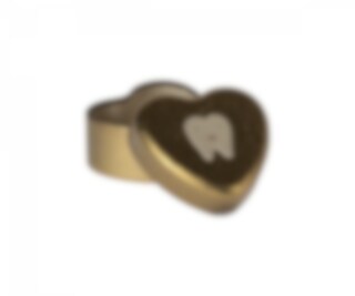 Detta guldiga metallhjärta är det perfekta stället att förvara små tänder i tills tandfen samlar in dem. Boxen har en fin tandsymbol och en härlig yta på locket.