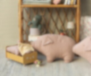 Mjukaste grisen i ljusrosa, som kan sitta alldeles själv! Och vem vill inte ha en bamsekram av denna? För alla åldrar.
