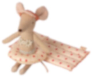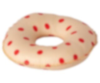 Badring i mjuk bomull med röda prickar. Badringen går ej att använda i vatten, endast fantasin får ta den ut på de guppande vågorna.