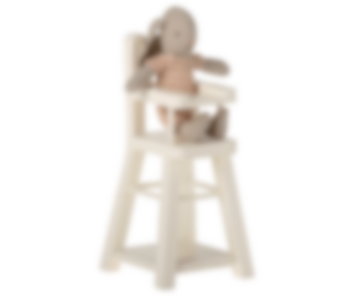 Med denna lilla barnstol är det lätt att få dina små vänner från Maileg att sitta med vid matbordet. Stolen är tillverkad av vitlackad trä. Stolen passar perfekt för kaniner i storlek micro. Rekommenderad från 3 år.