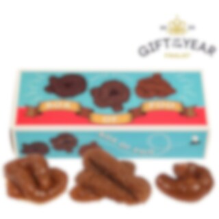 En låda som innehåller tre klibbiga, slemmiga och realistiska falska bajsar. Perfekt för att skämta med vänner och familj.
