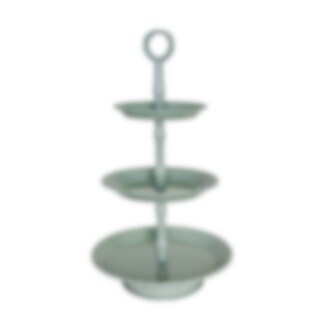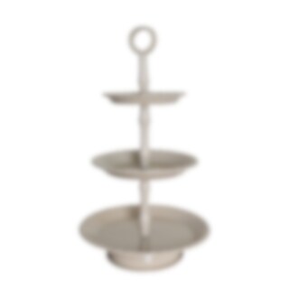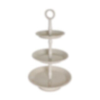 Beige kakfat i tre våningar med dekorativa prickiga kanter. Perfekt som tårtfat eller servering till buffén. Handtag högst upp för lätt förflyttning.