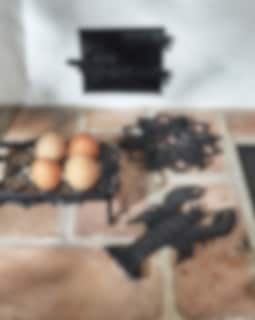 Grytunderlägg i form av ett blomma i svart gjutjärn för grytor och kastruller. Fin att hänga upp på väggen som köksdekoration när underlägget inte används.