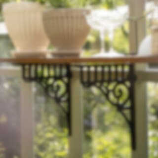 Konsol i svart gjutgärn i klassisk design med fina detaljer. Kombinera med valfritt hyllplan.