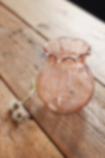 Liten vågig vas i infärgat askrosa glas som kombinerar enkelhet med en charmig design. Vasen har en organisk form som passar till både blommor eller ett gäng torkade kvistar.