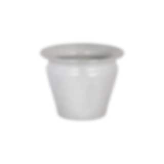 Liten rundad kruka i vitlackerad plåt. Kommer med en galvaniserad innekruka för att förhindra rost.