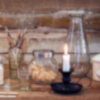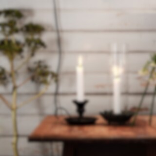 Svart ljusstake med elegant handtag i gammaldags design. Passar för ett kronljus.