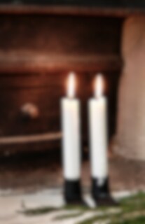 Ljusstake i svart järn som har formen av två fötter. Passar fint som dekoration på fönsterbrädan eller bordet. Måttet avser en fot.