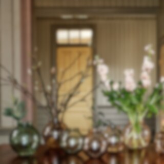 Minimalistisk och elegant vas i infärgat grått glas med etsade ränder. Vasen är tillverkad av 50-60% återvunnet glas.