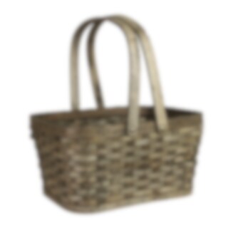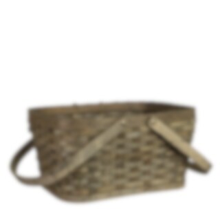 Rektangulär grå träkorg med två justerbara handtag. Perfekt för picknick, som svampkorg eller förvaringsbehållare.