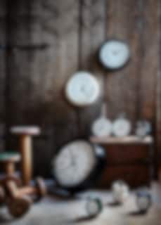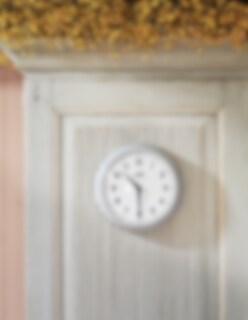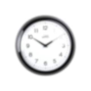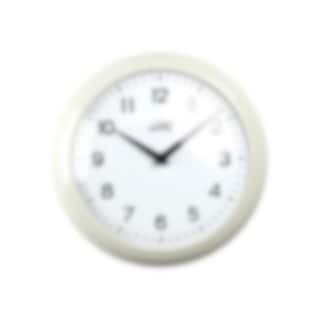 Väggklocka i klassisk och retro design med vit urtavla och svart kant. Klockan är märkt med texten Svenska Urfabriken, Göteborg. Passar utmärkt i köket, hallen eller vardagsrummet.