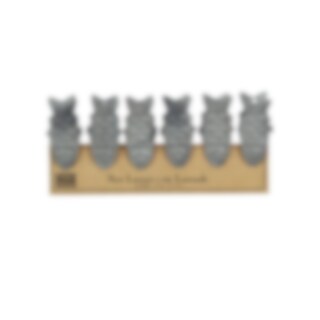 Små klämmor i form av fiskar i metall. Säljs i 6-pack. Använd till kökshandduken, som hållare till placeringskorten eller kom-ihåg-klämma.