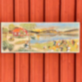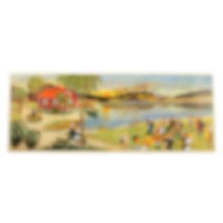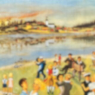 Gammaldags väggbonad i papper med vackert illustrerat sommarmotiv en Midsommarafton med dans vid sjön.