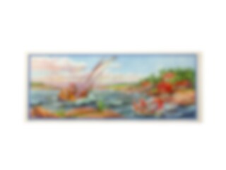 Äkta Gamla 50-tal! Gammaldags väggbonad i papper med vackert illustrerat motiv med båtar på sjön.