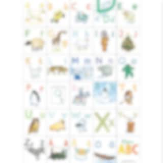 Pedagogisk alfabetposter med bokstäver och figurer från Ellens ABC-bok. Illustrationer av Catarina Kruusval.