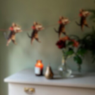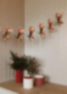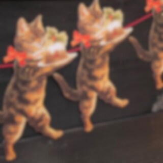 Söt girlang med katter på rad som serverar en god julkaka. Det är 10 st katter på ett snöre, en katt är 18 cm hög. Enkelsidigt tryck.