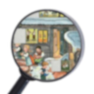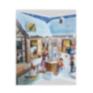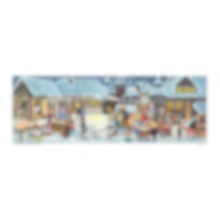 Vikbar julkalender med 24 luckor och silverglitter. Nytryck med ett gammaldags motiv från år 1968.