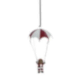 Gulligt julhänge som föreställer en björn i tomtedräkt som flyger fallskärm. Fin att hänga i fönstret, i taket eller i granen till jul.